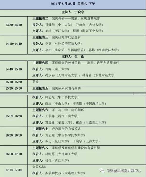 會議宗旨: 經(jīng)過多年建設(shè),案例研究已經(jīng)成為國內(nèi)外商科研究的主流研究方法之一,在探索新現(xiàn)象背后的管理理論等方面具有舉足輕重的地位;案例教學(xué)作為商學(xué)院人才培養(yǎng)的最主流的方法,煥發(fā)出了勃勃生機(jī);國內(nèi)的案例生態(tài)系統(tǒng)建設(shè)也形成了明顯區(qū)分于西方國家的具有自身鮮明特色的模式。案例研究、案例教學(xué)、案例生態(tài)系統(tǒng)建設(shè)三者同源共生,成為商學(xué)院生態(tài)系統(tǒng)建設(shè)的有效支撐。 我國具有豐富而多樣的管理創(chuàng)新實(shí)踐,天然地具有將案例教學(xué)、案例研究和案例生態(tài)系統(tǒng)建設(shè)融為一體的條件和土壤;同時(shí),傳統(tǒng)的以管理職能為學(xué)科劃分主體的模式因其對象的局限性和學(xué)科融合交叉等面臨著新的挑戰(zhàn),學(xué)科交叉重整成為新的趨勢,以橫跨管理學(xué)科各個(gè)職能模塊的管理案例為研究對象,以管理案例的研究、教學(xué)與生態(tài)系統(tǒng)建設(shè)及其橫向交叉的特點(diǎn)和規(guī)律為主題,以制約和影響管理案例研究教學(xué)和生態(tài)系統(tǒng)建設(shè)的若干核心關(guān)鍵問題為主攻方向,以構(gòu)建具有鮮明中國特色的管理案例學(xué)為目的的管理案例學(xué)的學(xué)科時(shí)機(jī)已經(jīng)基本具備。擬建設(shè)中的管理案例學(xué)作為解決普遍性的管理問題的有效策略和研究框架,不僅具有整合職能,而且在解決中國管理問題的規(guī)律和特點(diǎn)方面,具有明顯的優(yōu)勢;也將對構(gòu)建管理的中國學(xué)派做出積極的貢獻(xiàn)。 為此,由中國管理案例共享中心、上海大學(xué)管理學(xué)院、中國科學(xué)學(xué)與科技政策研究會企業(yè)創(chuàng)新與產(chǎn)業(yè)政策專業(yè)委員會聯(lián)合舉辦的本次研討會(高端論壇),將集中圍繞制約和影響管理案例研究、教學(xué)與生態(tài)系統(tǒng)建設(shè)的若干關(guān)鍵問題,開展命題式集中和深入研討,深化和突破現(xiàn)有的研究邊界,孵化新的學(xué)科。 會議時(shí)間:2021年8月28日(9:00-17:00) 騰訊會議:214-421-885 騰訊會議直播地址:https://meeting.tencent.com/l/pEc0xpc1WWJV 承辦單位:上海大學(xué)管理學(xué)院 學(xué)術(shù)顧問(姓氏拼音排序) 蔡 莉 (吉林大學(xué)) 陳春花 (北京大學(xué)) 井潤田 (上海交通大學(xué)) 劉志迎 (中國科學(xué)技術(shù)大學(xué)) 路江涌 (北京大學(xué)) 毛基業(yè) (中國人民大學(xué)) 歐陽桃花(北京航空航天大學(xué)) 任之光 (國家自然科學(xué)基金委員會) 宋 華 (中國人民大學(xué)) 蘇 勇 (復(fù)旦大學(xué)) 蘇敬勤 (大連理工大學(xué)) 田志龍 (華中科技大學(xué)) 王永貴 (首都經(jīng)濟(jì)貿(mào)易大學(xué)) 魏 江 (浙江大學(xué)) 吳曉波 (浙江大學(xué)) 肖靜華 (中山大學(xué)) 謝 康 (中山大學(xué)) 許 暉 (南開大學(xué)) 張玉利 (南開大學(xué)) 趙曙明 (南京大學(xué)) 鎮(zhèn) 璐 (上海大學(xué)) 朱方偉 (大連理工大學(xué)) 組織委員會 蘇敬勤 (大連理工大學(xué)) 于曉宇 (上海大學(xué)) 楊 俊 (浙江大學(xué)) 王家寶 (上海大學(xué)) 崔 淼 (大連理工大學(xué)) 林海芬 (大連理工大學(xué)) 黃海昕 (大連理工大學(xué)) 胡 芬 (大連理工大學(xué)) 支持學(xué)會 中國管理現(xiàn)代化研究會管理案例研究專業(yè)委員會 中國管理現(xiàn)代化研究會創(chuàng)業(yè)與中小企業(yè)管理專業(yè)委員會 中國技術(shù)經(jīng)濟(jì)學(xué)會技術(shù)創(chuàng)新創(chuàng)業(yè)分會 支持期刊 《Journal of Management Studies》、《Entrepreneurship Research Journal》等。 《管理世界》、《南開管理評論》、《科研管理》、《管理評論》、《管理學(xué)報(bào)》、 《管理學(xué)季刊》、《研究與發(fā)展管理》、《外國經(jīng)濟(jì)與管理》、《工業(yè)工程與管理》、《管理案例研究與評論》等。 聯(lián)絡(luò)人: 王家寶副教授 (上海大學(xué))137-9537-1048 黃海昕副教授 (大連理工大學(xué))159-9861-6209