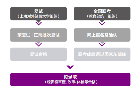 上海對外經貿大學MBA預復試申請及面試共分為四個步驟: