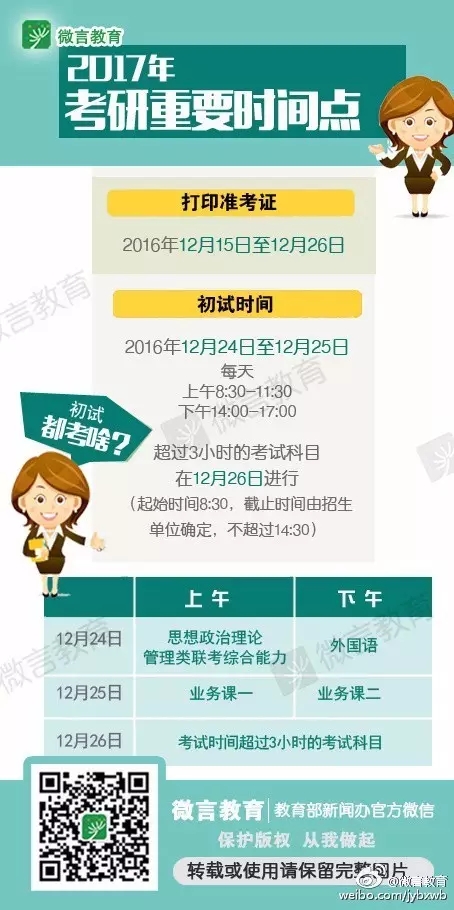 2016年12月15日至12月26日,考生可憑網(wǎng)報(bào)用戶名和密碼登錄“研招網(wǎng)”下載打印《準(zhǔn)考證》