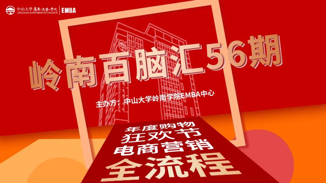 11月27日晚,由中山大學(xué)嶺南學(xué)院EMBA中心主辦的嶺南百腦匯第56期在廣州創(chuàng)投小鎮(zhèn)開講。本期講座以復(fù)盤年度雙十一購物狂歡節(jié)的電商營銷全流程為主題,由立白集團總裁陳澤濱校友(EMBA16冬)、TCL電商業(yè)務(wù)中心渠道總監(jiān)耿會杰同學(xué)(EMBA19班)、逸仙電商-小奧汀運營總監(jiān)楊建龍三位嘉賓進行主題分享,中山大學(xué)嶺南學(xué)院院長助理、EMBA中心主任、商務(wù)管理系副教授鄔金濤擔任點評教授,嶺南EMBA校友和外部邀請的嘉賓等60余人共同參與了本期研討沙龍。