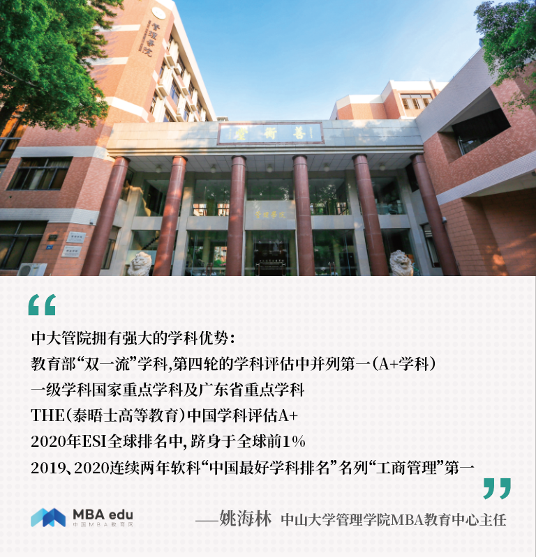事實也確實如此。無論是社會認可度、國際化程度、品牌影響力及知名度,中大管院MBA在中國商科教育的舞臺上占有舉足輕重的位置。