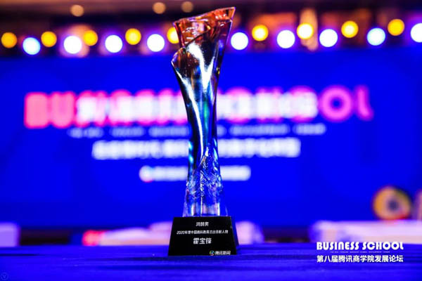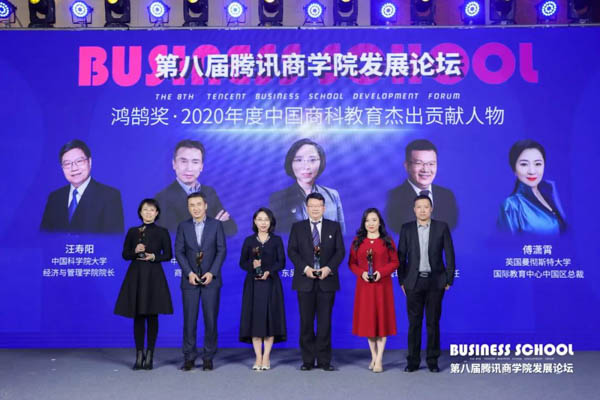 論壇上,霍寶鋒被評為“鴻鵠獎·2020年度中國商科教育杰出貢獻人物”。