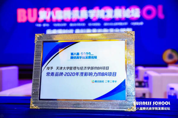 天津大學管理與經濟學部MBA項目榮獲 “常青品牌·2020年度影響力MBA項目”榮譽稱號。