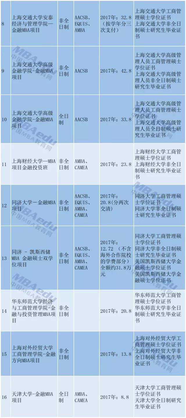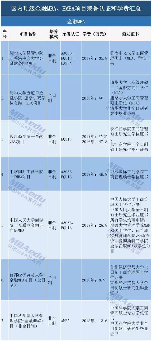 國內(nèi)有哪些頂級的金融MBA項(xiàng)目呢?小編做了統(tǒng)計(jì),供大家參考: