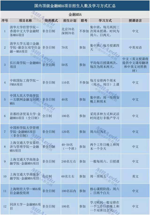 那國(guó)內(nèi)頂級(jí)金融MBA、EMBA項(xiàng)目的院校招生名額及學(xué)習(xí)方式是怎樣的呢?今天小編繼續(xù)給大家送上關(guān)于金融MBA、EMBA院校招生及學(xué)習(xí)方式情況: