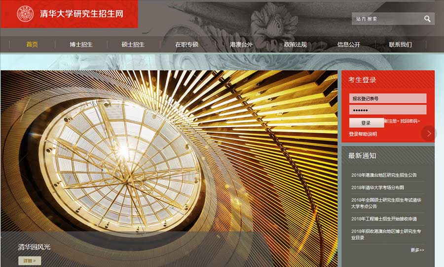 2018年全國(guó)碩士研究生考試成績(jī)查詢?nèi)肟?/span>(http://yz.tsinghua.edu.cn/publish/yjszs/index.html)
