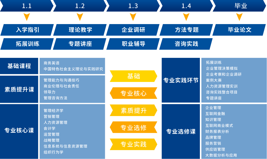 采取通才教育與專才發(fā)展并重的培養(yǎng)模式,側(cè)重管理通用技能的提升和專業(yè)能力的深入
