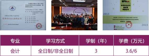 學(xué)院MPAcc項(xiàng)目自2011年辦學(xué)以來(lái),已經(jīng)形成了學(xué)生職業(yè)技能與學(xué)術(shù)素養(yǎng)并重,培養(yǎng)質(zhì)量與辦學(xué)規(guī)模穩(wěn)定的發(fā)展態(tài)勢(shì)。2015年學(xué)院MPAcc項(xiàng)目順利通過(guò)國(guó)務(wù)院學(xué)位辦組織的專(zhuān)業(yè)學(xué)位教育項(xiàng)目專(zhuān)項(xiàng)評(píng)估。在2014年、2015年、2016年全國(guó)會(huì)計(jì)碩士專(zhuān)業(yè)學(xué)位優(yōu)秀學(xué)位論文評(píng)比中,學(xué)院連續(xù)三年獲得全國(guó)優(yōu)秀學(xué)位論文,2015年獲優(yōu)秀學(xué)位論文組織獎(jiǎng)。
